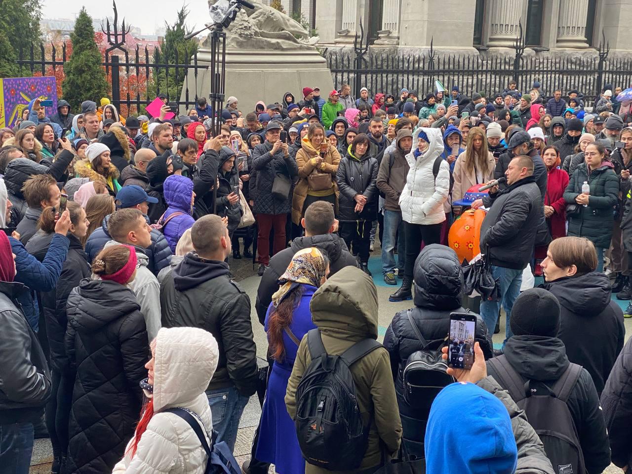 Участники митинга начали собираться около 8 утра в Мариинском парке. Все они были без масок. Это было одним из правил организаторов.