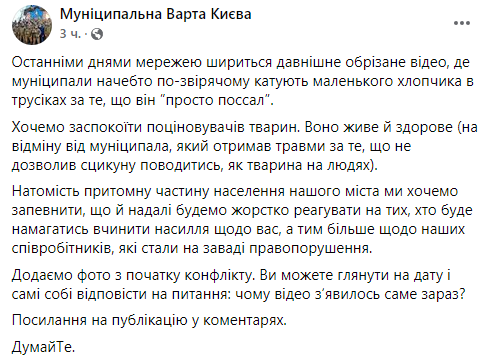 На странице организации в Facebook от 8 июня сохранился пост, в котором говорится, что якобы пьяный мужчина отреагировал кулаками на замечание наряда, поэтому был задержан и передан правоохранителям.