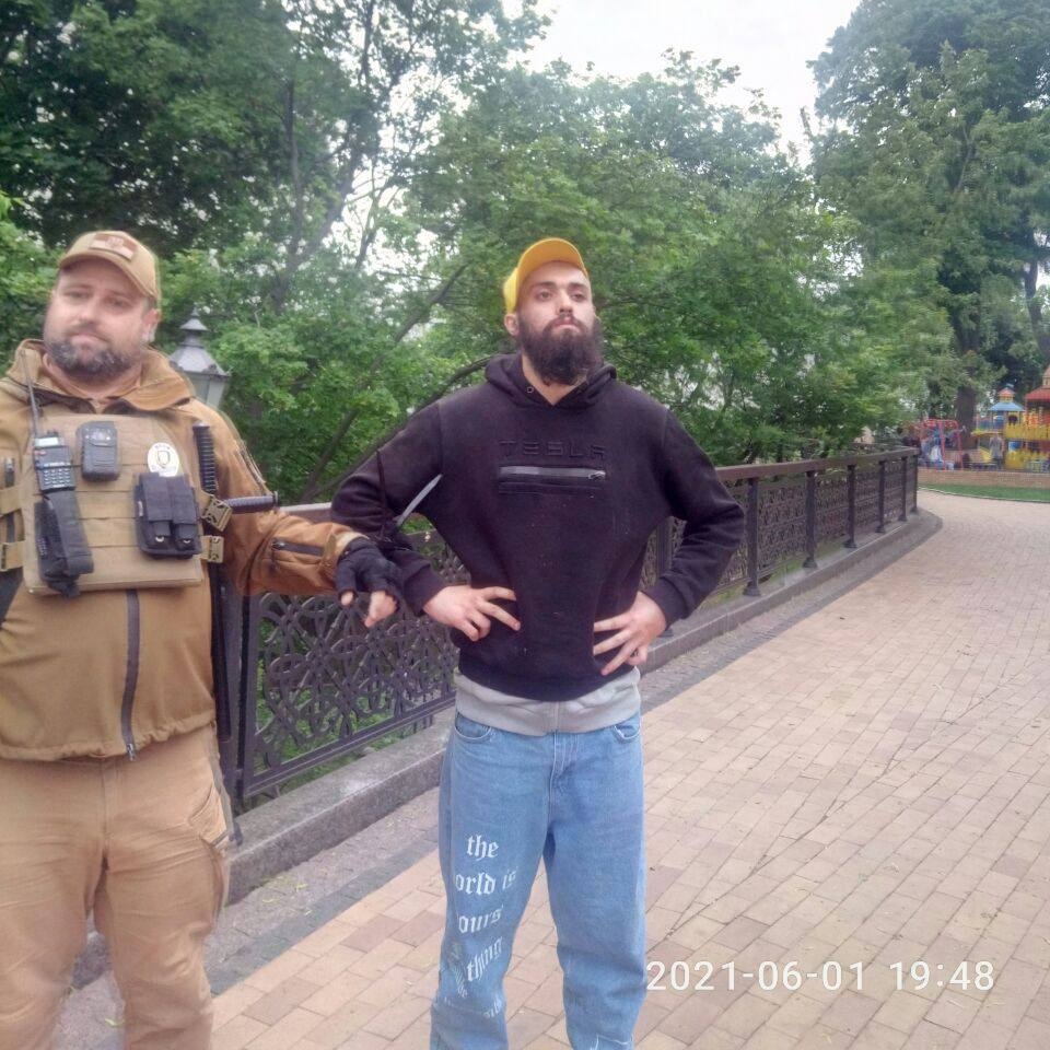 Судя по дате на скриншоте с видео, члены "Мунварты" избивали парня 1 июня, в День защиты детей. Показательное фото с нарушителем довольные собой киевские охранники символично сделали напротив детской площадки, приковав человека наручниками.