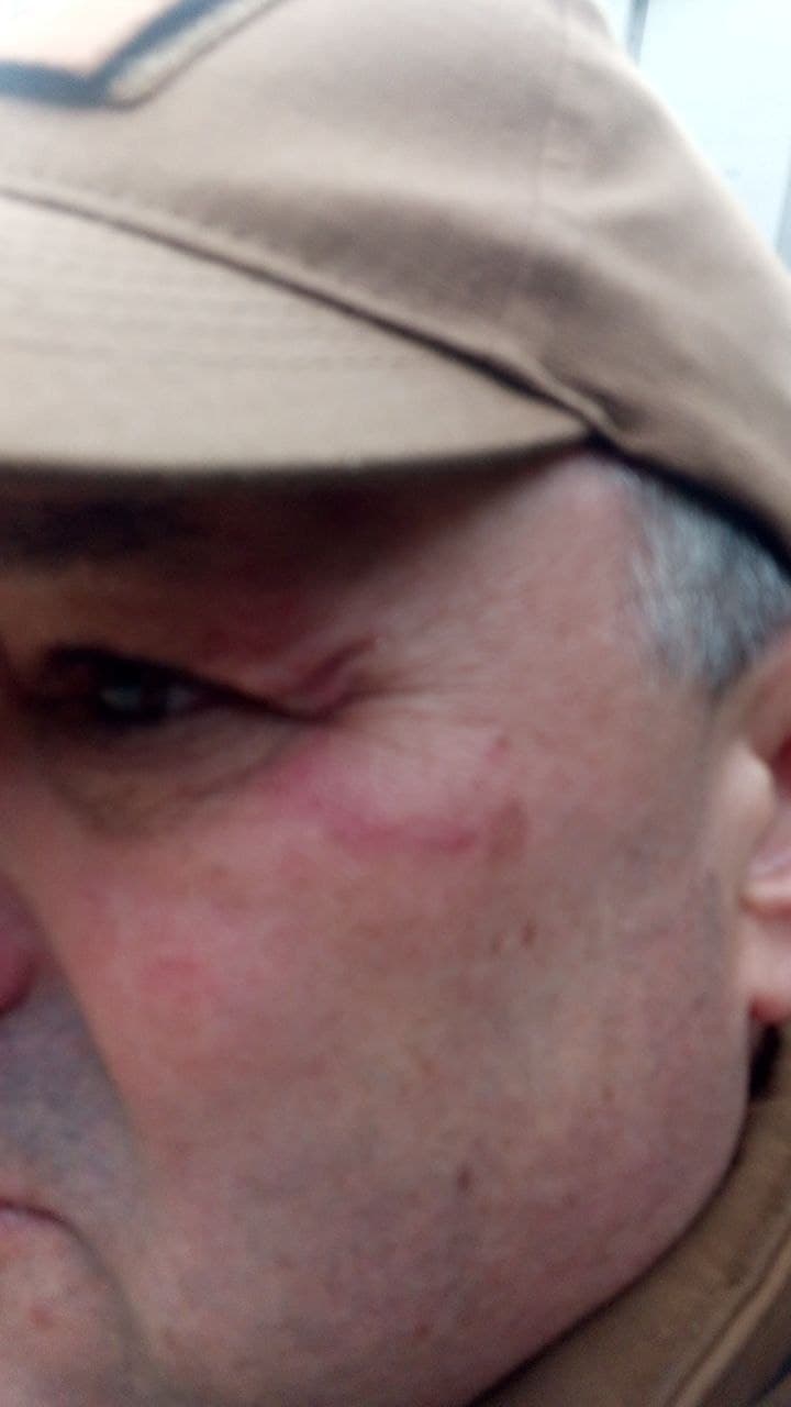 Фото ниже прикрепили, по всей видимости, в доказательство того, что сами серьезно пострадали от рук местного хулигана. Хотя, конечно, небольшое покраснение на лице человека в амуниции нельзя сопоставить с побоями, нанесенными по почкам дубинкой обычному парню.