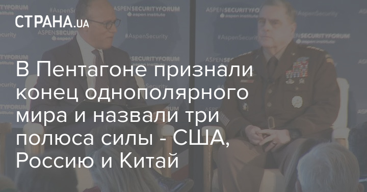 Глава объединенного комитета начальников штабов США Марк Милли заявил, что мир сейчас становится триполярным. Новыми центрами силы выступают США, Россия и Китай.