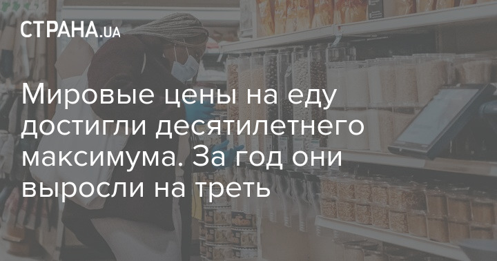 Мировые цены на продукты достигли максимума за 10 лет. Продукты питания подорожали на 3% по сравнению с сентябрём 2021 года и на 31,3% по сравнению с октябрём-2020. Рост цен обусловлен подорожанием растительных масел, зерновых культур и молочных продукций по всему миру.