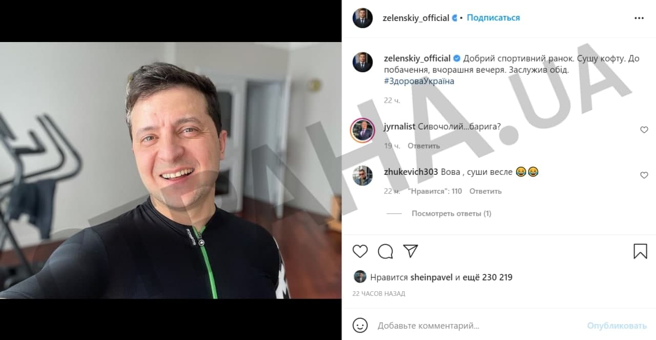 Что интересно, ролик этот был записан ровно за день до фотографии из спортзала - Зе посетил Музей освобождения Киева именно 6 ноября. А во время вчерашней тренировки гарант резко поседел.