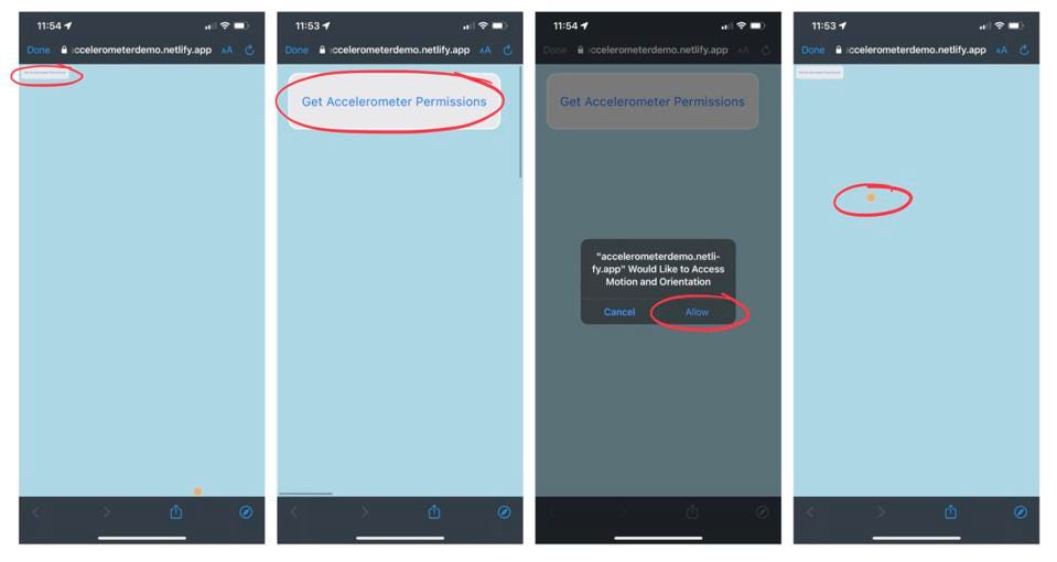 Миск предупреждает, что "датчик движения доступен для Chrome по умолчанию, тогда как Safari в iOS доступ защищен с помощью разрешения от пользователя".