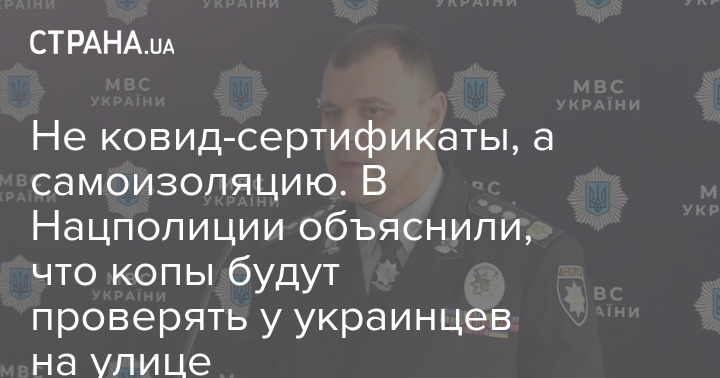 Глава Национальной полиции Украины опроверг своё же заявление  о том, что полиция будет проверять Covid-сертификаты на улицах. По его словам, проверок сертификатов не будет, зато будет проверка паспортов для контроля самоизоляции.