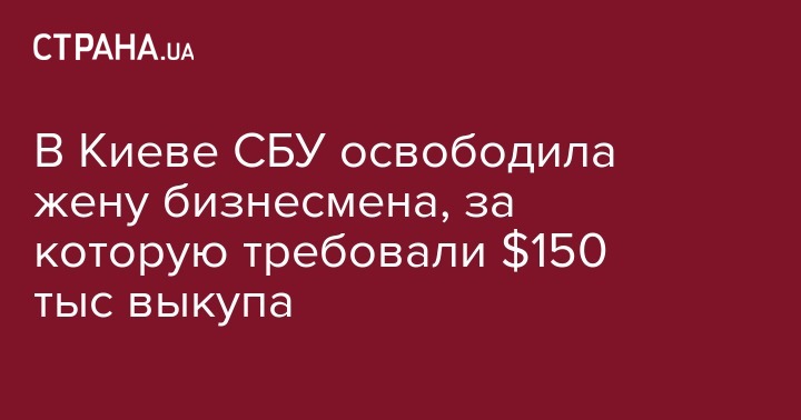 В Киеве СБУ освободила женщину, которую украли для получения выкупа в $150 тыс. Об этом сообщает пресс-служба ведомства.