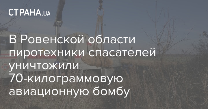 В Ровенской области пиротехники Государственной службы Украины по чрезвычайным ситуациям уничтожили 70-килограммовую авиационную бомбу.