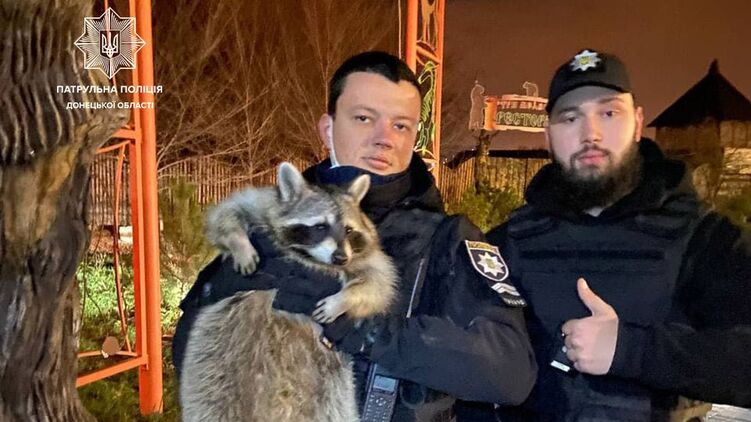 Енота Сеню нашли и доставили невредимым в зоопарк. Фото: Патрульная Полиция Донецкой области