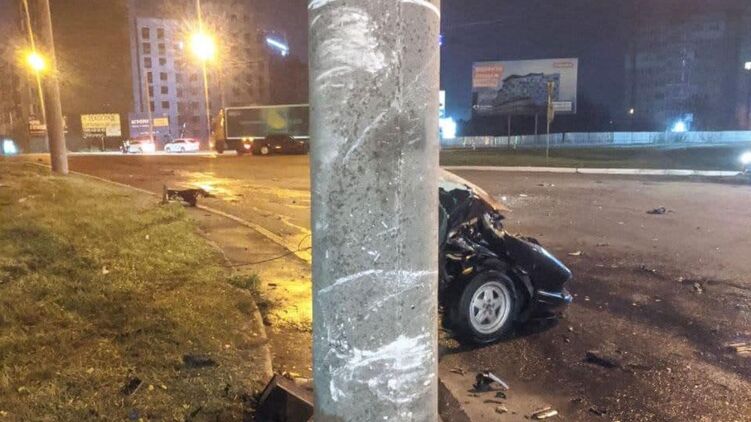 В Ровно нетрезвый водитель Plymouth Acclaim на большой скорости протаранил электроопору. От удара его автомобиль буквально разорвало пополам, после чего он загорелся.