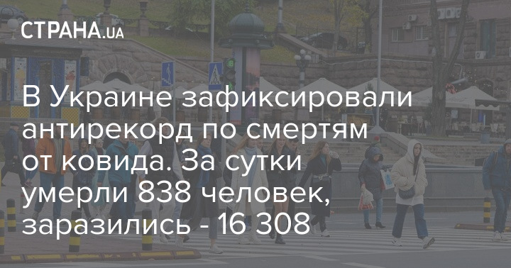 В Украине за прошлые сутки зафиксировали 838 смертей от коронавируса. Это новый антирекорд. Заразились Covid-19 вчера 16 308 человек.