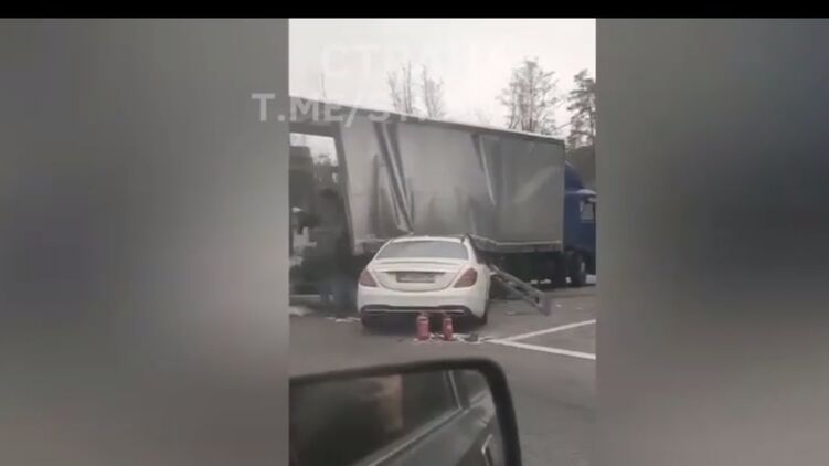 В сети появилось видео с места ДТП.На кадрах видно легковой автомобиль, в котором ехал народный избранник - Mercedes S 560 и грузовик. Судя по всему, удар был достаточно большой силы, из кузова грузовика на автомобиль даже высыпались мешки. Рядом стоит автомобиль Национальной полиции.