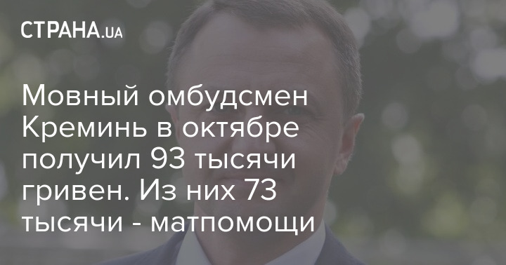 Мовный омбудсмен Креминь в октябре получил 93 тысячи гривен. Из них 73 тысячи - матпомощи