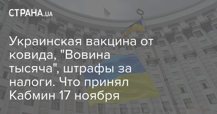 Украинская вакцина от ковида, "Вовина тысяча", штрафы за налоги. Что принял Кабмин 17 ноября