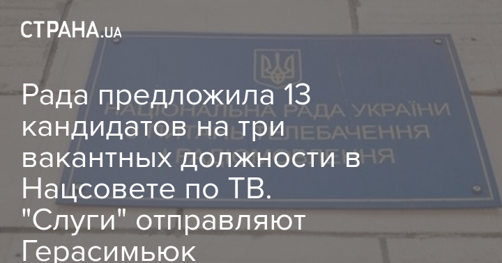 Рада предложила 13 кандидатов на три вакантных должности в Нацсовете по ТВ. "Слуги" отправляют Герасимьюк