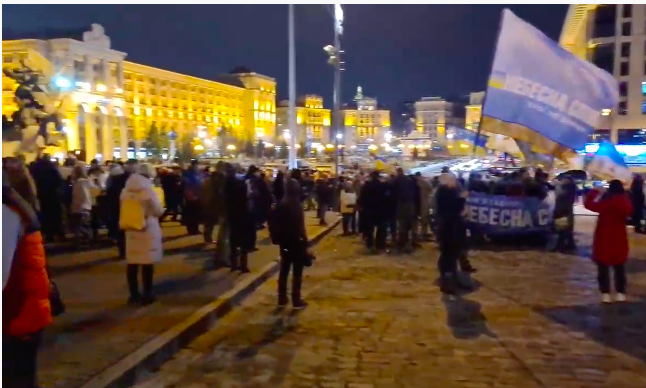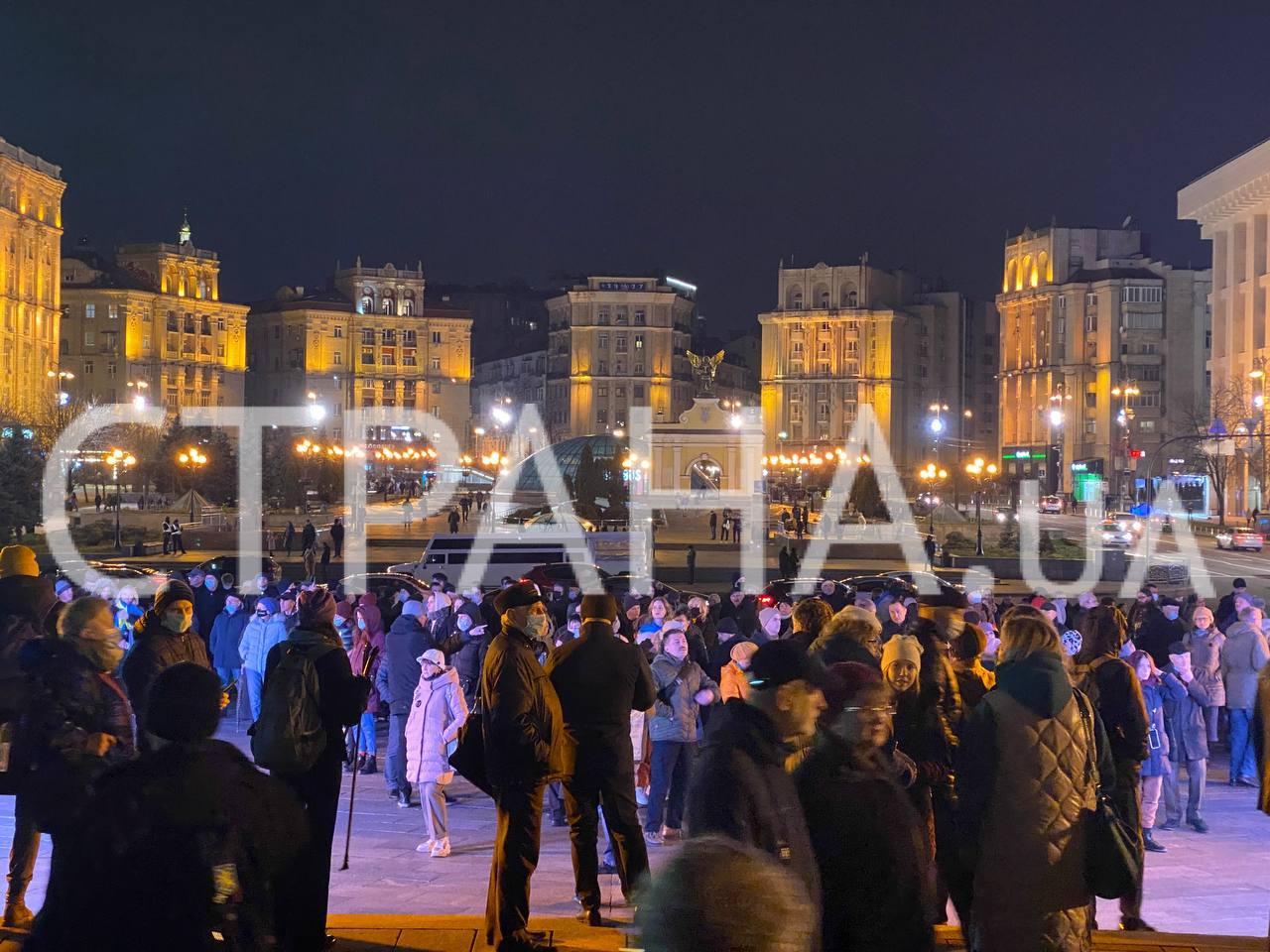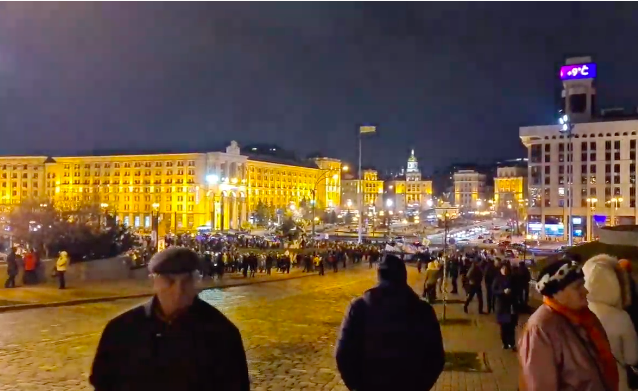 Люди вышли в центр Киева на годовщину Евромайдана. Кадр из видео