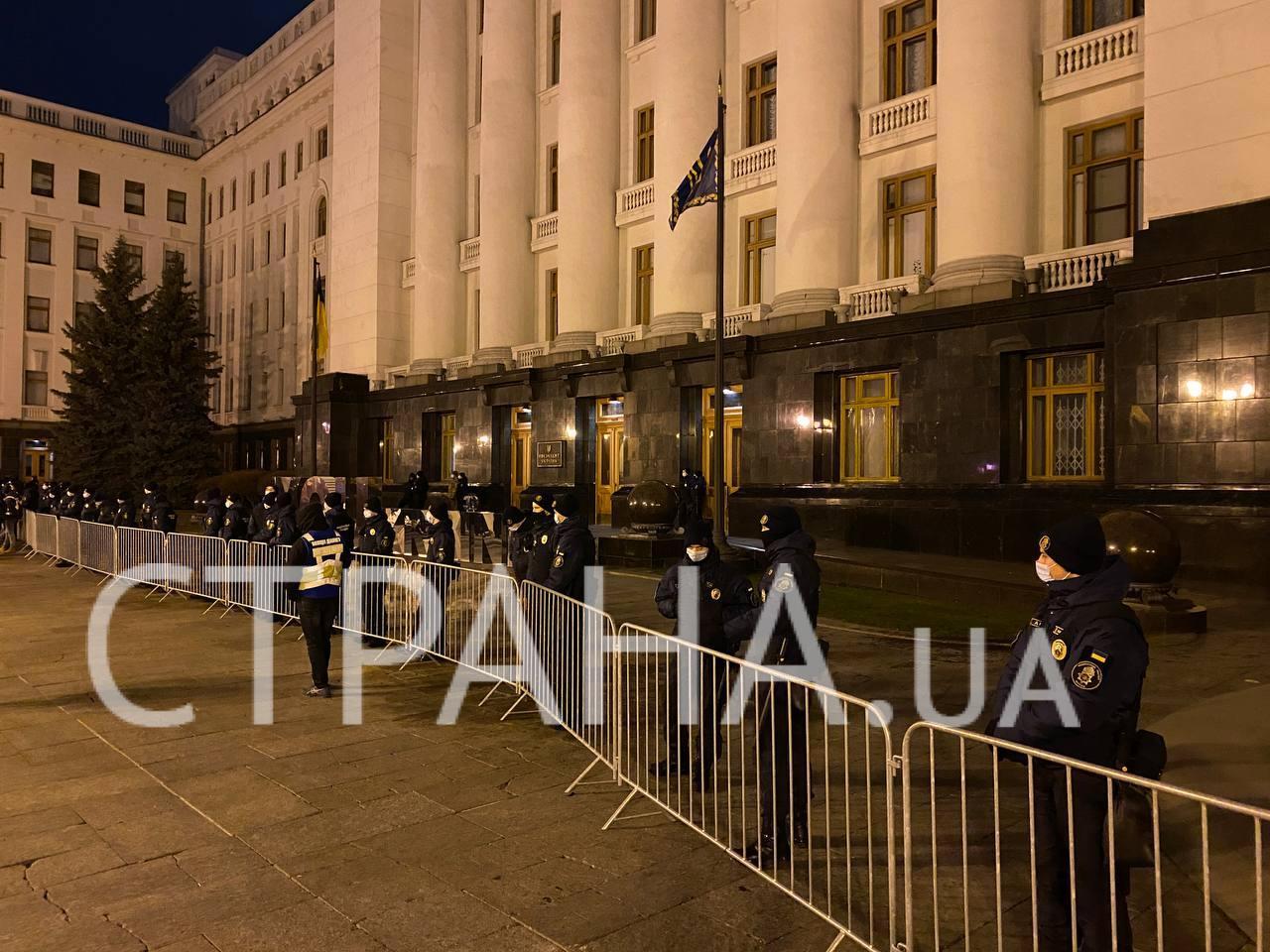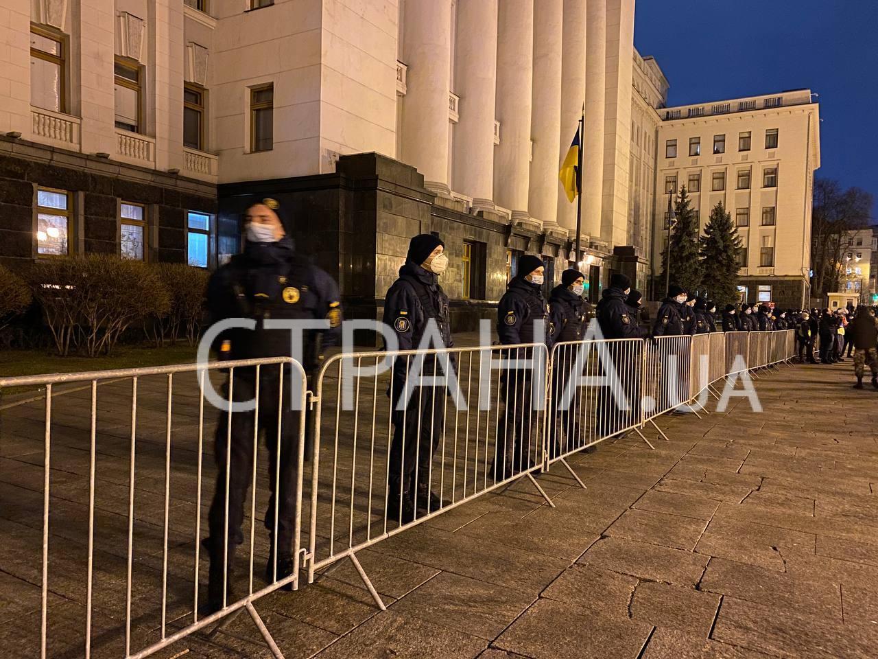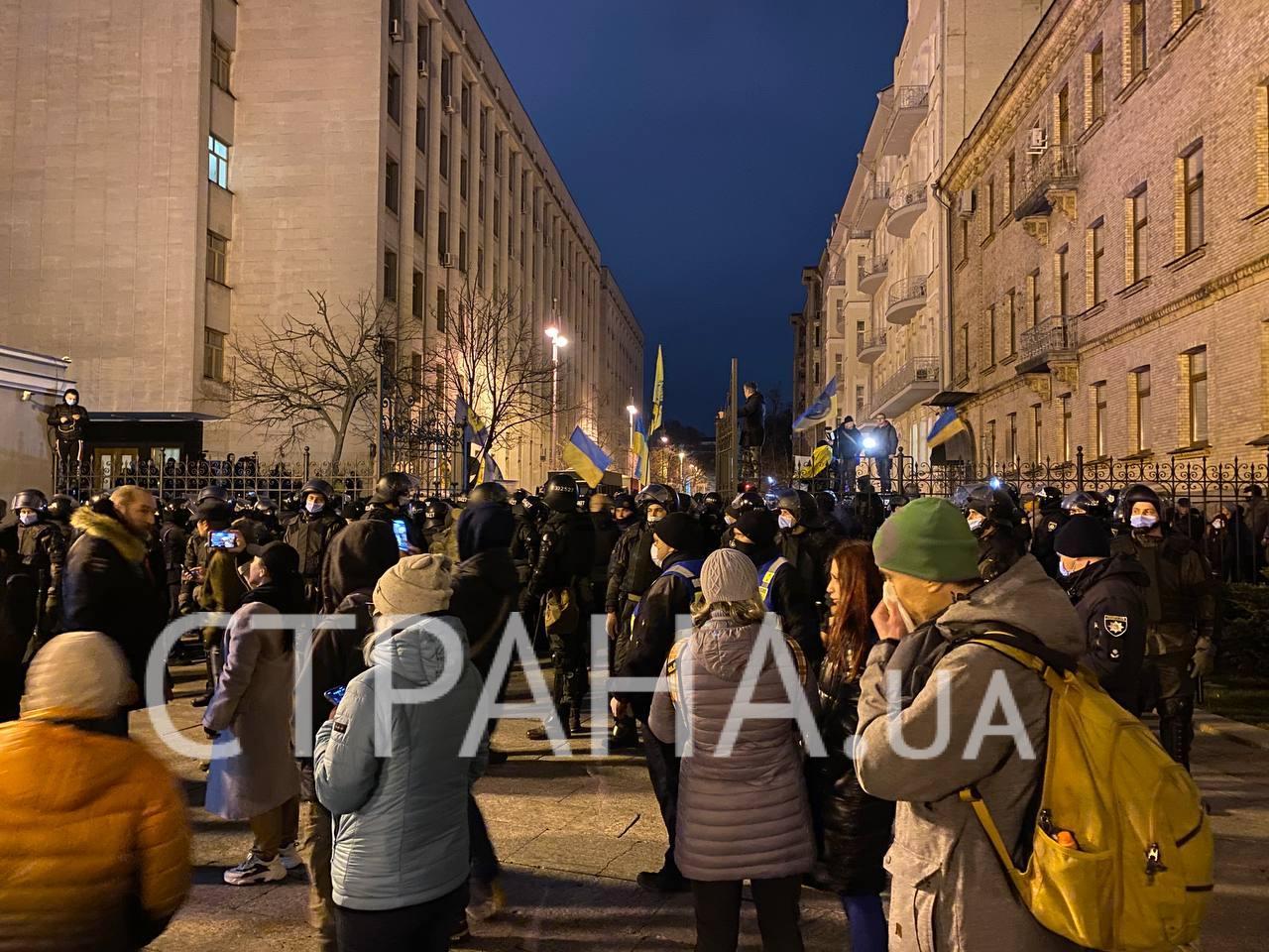 Правоохранители не применяли средства защиты, слезоточивый газ, дубинки, а только сдерживают протестующих от прорыва на территорию ОП.
