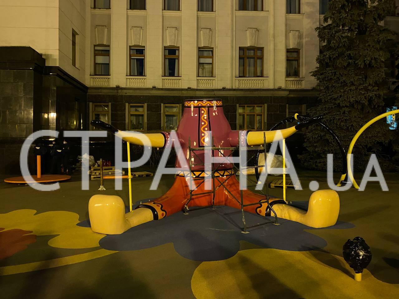 19:29 К слову, под ОП разобрали детскую площадку, которая была создана по мотивам произведений Марии Примаченко. Остался один "петух в косоворотке", который на самом деле курящий селезень, и тот без головы.