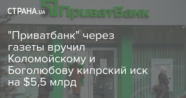 "Приватбанк" опубликовал во всеукраинских газетах "Голос Украины", "День", "Факты и комментарии" уведомление об иске на 5,5 млрд долларов к бывшему акционеру финучреждения Игорю Коломойскому