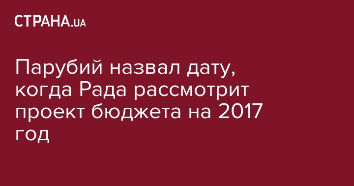 "Согласно регламенту работы Верховной Рады, мы должны не позднее 20 октября, то есть в этот четверг, рассмотреть проект закона о государственном бюджете Украины на 2017 год", - сказал Парубий.