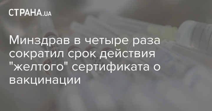 Минздрав изменил срок действия сертификата о вакцинации одной дозой препарата против коронавируса. Теперь срок срок его действия сократился в четыре раза. Таким образом, он будет действителен не 120 дней, а всего 30. Об этом сообщил министр здравоохранения Виктор Ляшко.
