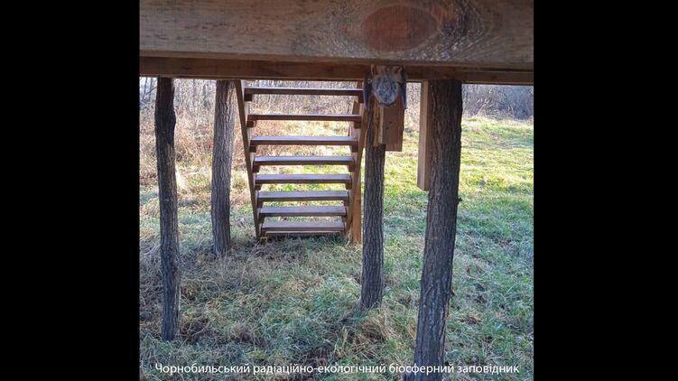 Существо с фото сотрудники заповедника заметили под деревянной башней для наблюдения за птицами. Скорее всего, мышь пристроилась там зимовать.