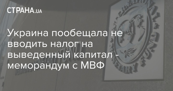 Украина пообещала не вводить налог на выведенный капитал - меморандум с МВФ