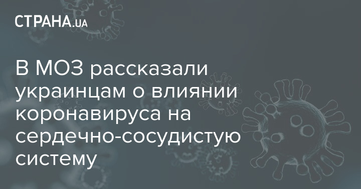 По данным МОЗ, пациенты, которые до инфицирования COVID-19, имели проблемы с сердечно-сосудистой системой, более уязвимы к тяжелому течению коронавирусной болезни или смерти. В то же время часто проблемы с сердечно-сосудистой системой развиваются у пациентов из-за COVID-19, которые до этого их не имели.