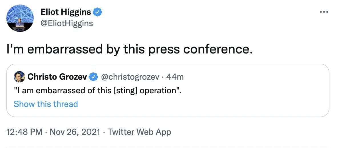 Основатель Bellingcat Элиот Хиггинс, а также руководитель группы журналистов-расследователей Христо Грозев сообщили, что они обескуражены тем, что сказал президент Владимир Зеленский об операции по "вагнеровцам".