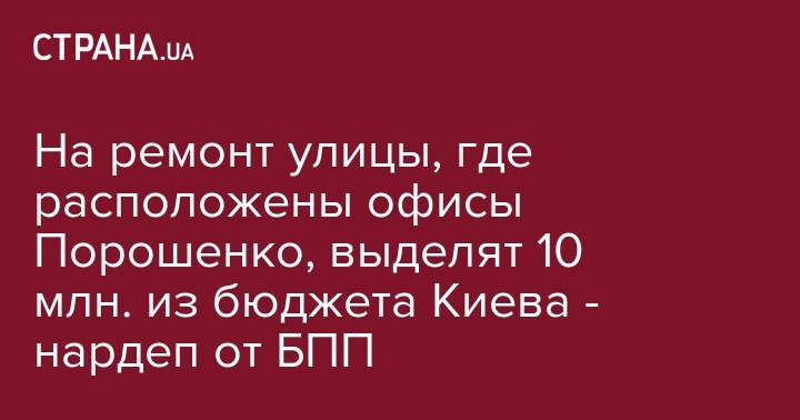 На ремонт улицы, где расположены офисы Порошенко, выделят 10 млн. из бюджета Киева - нардеп от БПП