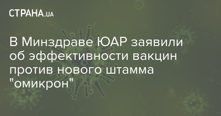 "Имеющиеся данные показывают эффективность существующих вакцин в борьбе с омикрон-штаммом. Сейчас среди госпитализированных в ЮАР с омикрон-штаммом коронавируса 75% не имеют прививок от COVID-19", - цитирует его новостной портал Sunday Times.