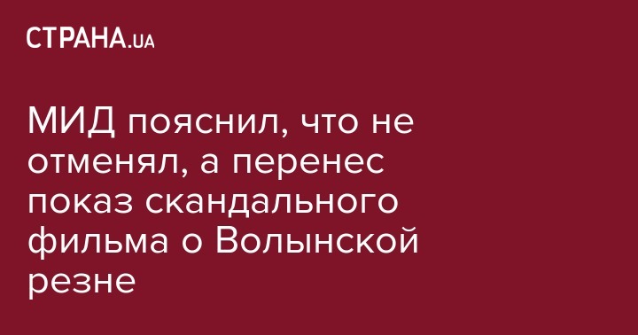 МИД пояснил, что не отменял, а перенес показ скандального фильма о Волынской резне