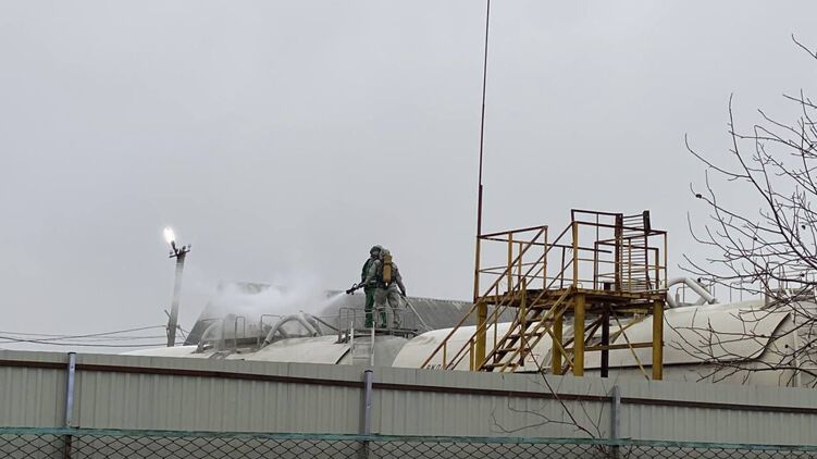 Спасатели ликвидируют последствия утечки аммиака. Фото: facebook.com/MNS.GOV.UA