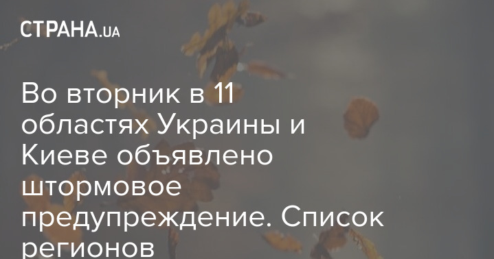 Во вторник, 30 ноября, в Украине ожидаются сильные порывы ветра. В 11 областях и в Киеве объявлено штормовое предупреждение.