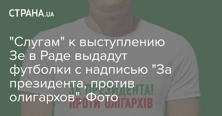 По информации источников "Страны", в среду, 1 декабря, во время выступления Владимира Зеленского в парламенте депутатам фракции "Слуги народа" выдадут футболки белого цвета, на которых будет надпись "За президента, против олигархов".