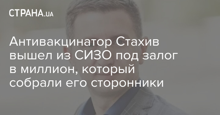 Антивакцинатор Стахив вышел из СИЗО под залог в миллион, который собрали его сторонники