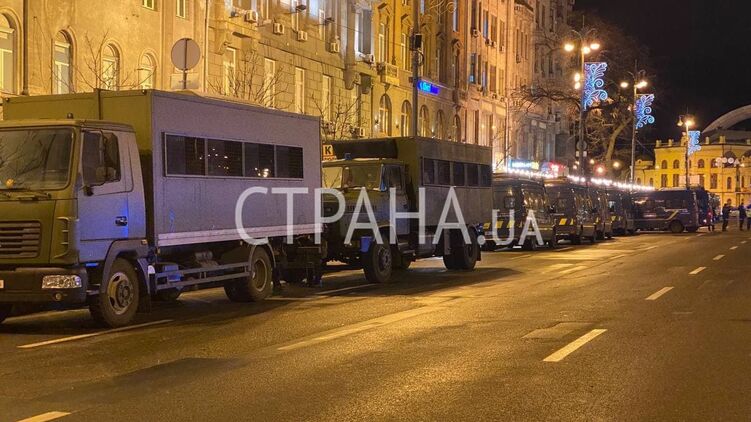 На Крещатике стоят десятки автозаков для собравшихся на Майдане "порохоботов" и националистов. Фото и видео