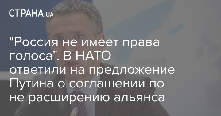 Генеральный секретарь НАТО Йенс Столтенбер в ответ на предложение президента РФ Владимира Путина дать юридические гарантии не расширения альянса на восток, заявил, что Россия не имеет права налагать ограничения на вступление стран, в том числе и Украины, в НАТО.