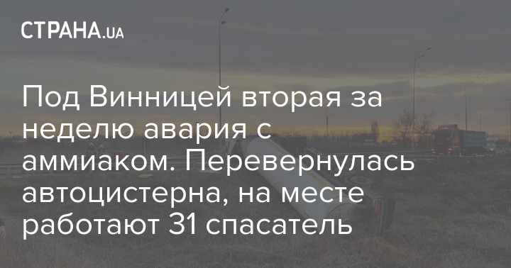 Под Винницей спасатели ГСЧС ликвидируют последствия ДТП, в результате которого перевернулась автоцистерна с 19 тоннами амиака. ЧП произошло в пятницу, 3 декабря, в 6:23 на Черкасском шоссе (автодорога М30 Стрый-Тернополь-Кропивницкий-Знаменка-Луганск-Изварино). Об этом сообщается на сайте ГСЧС.