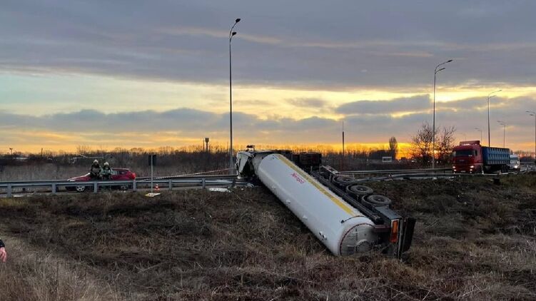 под Винницей перевернулась автоцистерна с аммиакомпод Винницей перевернулась автоцистерна с аммиаком