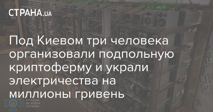 Сотрудники СБУ разоблачили в Киевской области подпольную криптоферму, которую организовали три человека. Для майнинга криптовалют они рендовали ангарное помещение в Бучанском районе о разместили там оборудование. Чтобы не тратиться на электричество, они пустили кабель в обход счетчика и платили за электроэнергию минимальные суммы. Ущерб государству нанесенный таким образом предварительно оценивают в 3,5 млн грн.