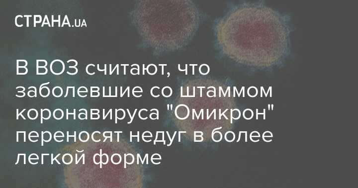 Первоначальные данные экспертов свидетельствуют о том, что заразившиеся штаммом коронавируса "Омикрон" переносят COVID-19 в более легкой форме, однако окончательные выводы на этот счет делать пока рано.