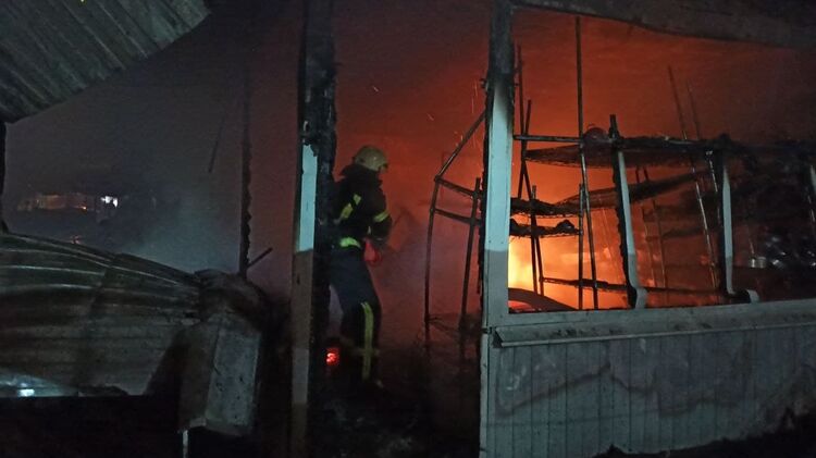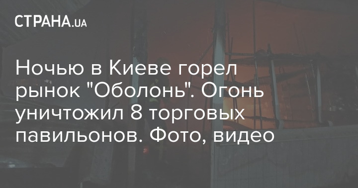 Ночью в Киеве горел рынок "Оболонь". Огонь уничтожил 8 торговых павильонов. Фото, видео