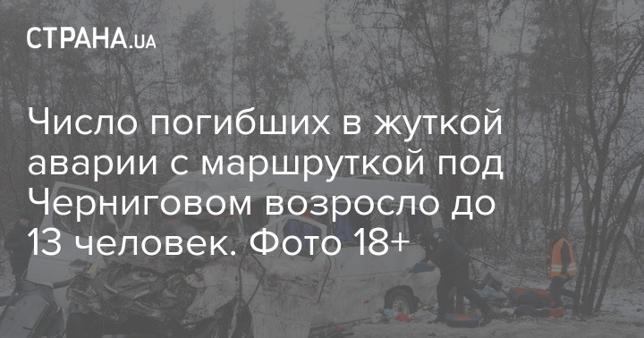 Число погибших в жутком ДТП, которое произошло утром 7 декабря возле села Бруслив в Черниговской области, где грузовик столкнулся с маршруткой, возросло до 13 человек.