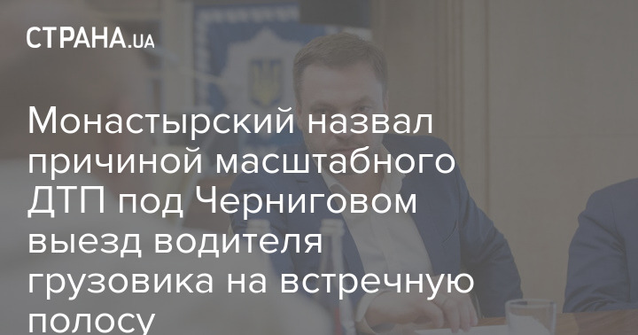 Министр внутренних дел (МВД) Украины Денис Монастырский выразил соболезнования родственникам погибших в сегодняшнем смертельном ДТП под Черниговом и заявил, что трагедия произошла по причине нарушения водителем грузовика ПДД. Он также добавил, что по его инициативе в Разу будут внесены законопроекты, направленные на повышение безопасности дорожного движения в Украине.