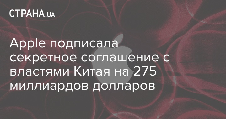 Агентство The Information опубликовало расследование, согласно которому генеральный директор компании Apple Inc Тим Кук подписал секретное соглашение с правительством Китая на сумму около 275 миллиардов долларов.