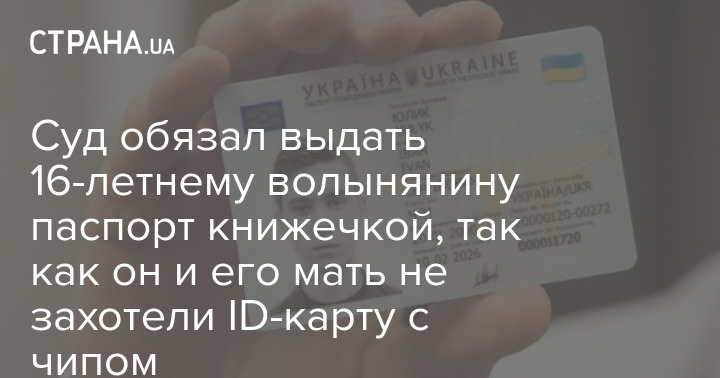 Волынский окружной административный суд обязал Государственную миграционную службу выдать 16-летнему юноше паспорт в виде книжечки. Подросток и его мать не хотят иметь ID-карту с чипом, содержащим персональные данные.
