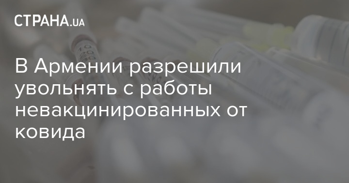 Парламент Армении проголосовал за законопроект, разрешающий увольнять невакцинированных от коронавируса работников. Согласно документу, увольнять будет возможно в том случае, если в течение десяти дней работники не предоставят сертификат о прохождении вакцинации от COVID-19 или отрицательный тест на коронавирус. За принятие документа проголосовали 60 депутатов, 26 парламентариев из оппозиции выступили против.