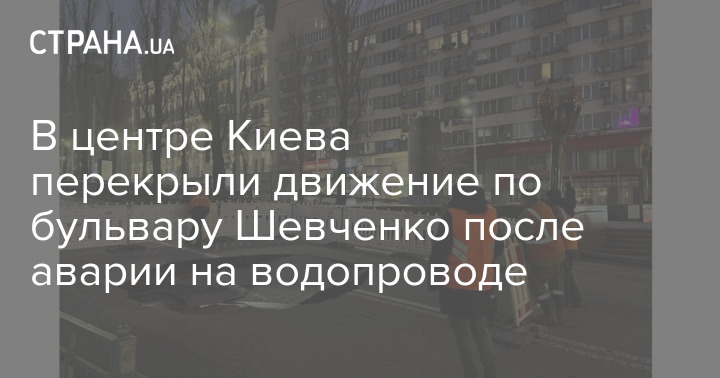 В Киеве на бульваре Тараса Шевченко перекрыто движение в направлении улицы Крещатик, а также временно изменены маршруты движения общественного транспорта из-за повреждения водопровода.