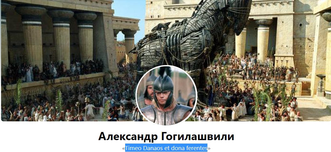 На этом фото, загруженном в 2020 году, изображены античный герой Ахиллес, троянский конь и лозунг: "Бойтесь данайцев, дары приносящих".