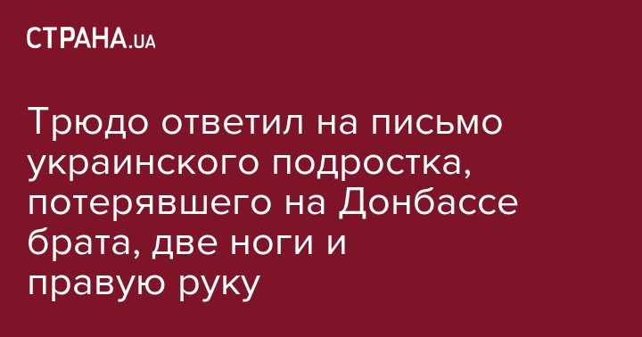 Трюдо ответил на письмо украинского подростка, потерявшего на Донбассе брата, две ноги и правую руку